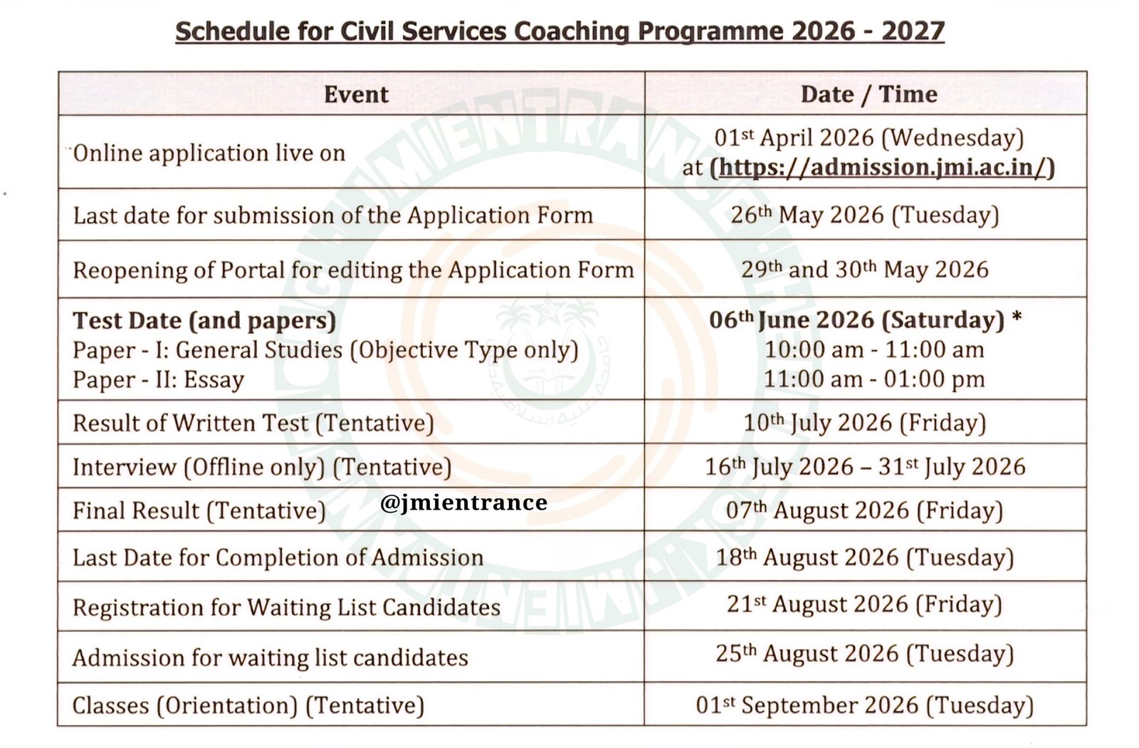 - Jamia RCA Forms | 2026 | Important Dates | JMI UPSC IAS Free Coaching - March 16, 2026