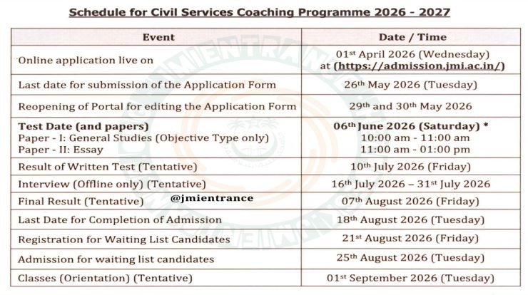 - Jamia RCA Forms | 2026 | Important Dates | JMI UPSC IAS Free Coaching - March 16, 2026